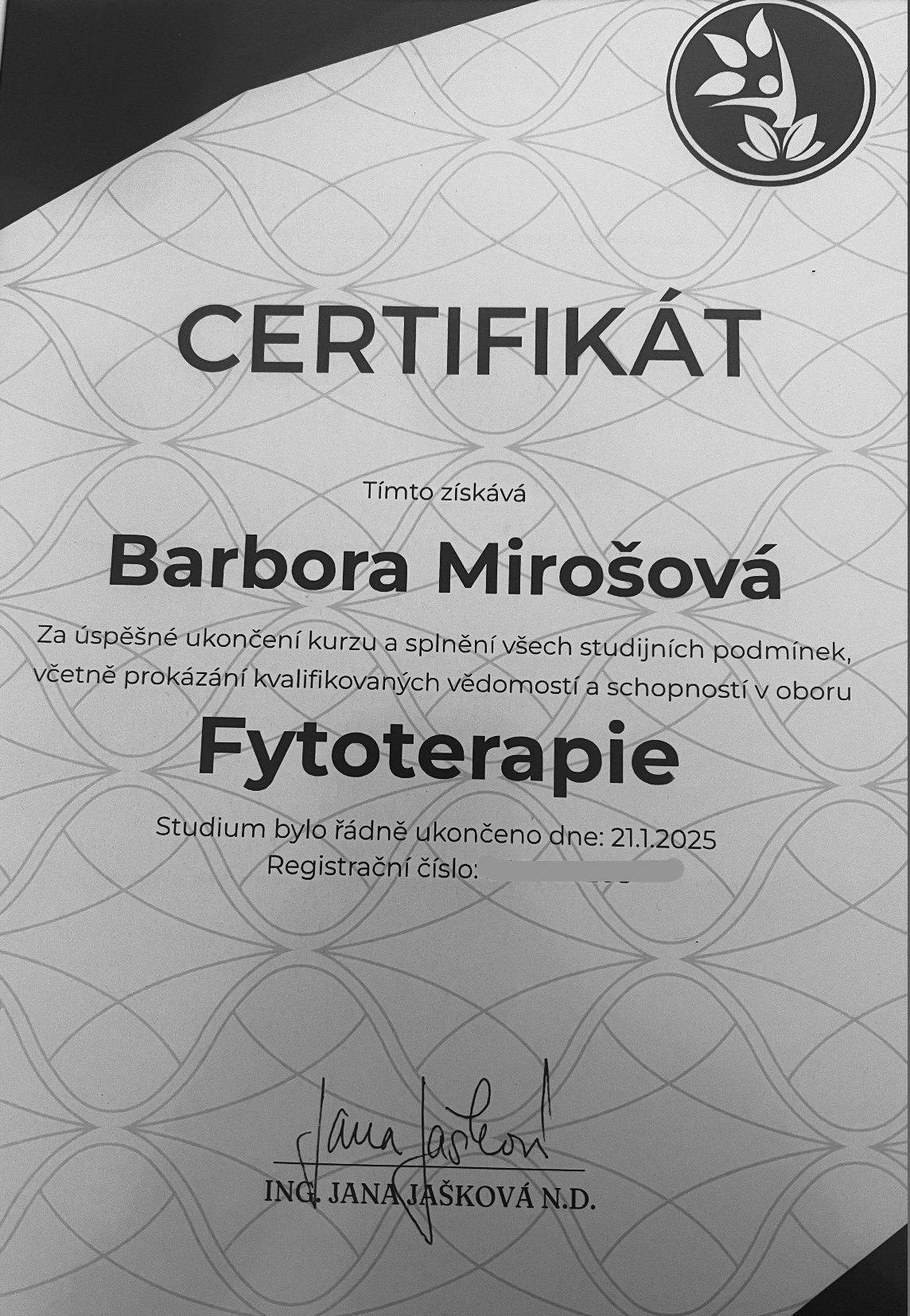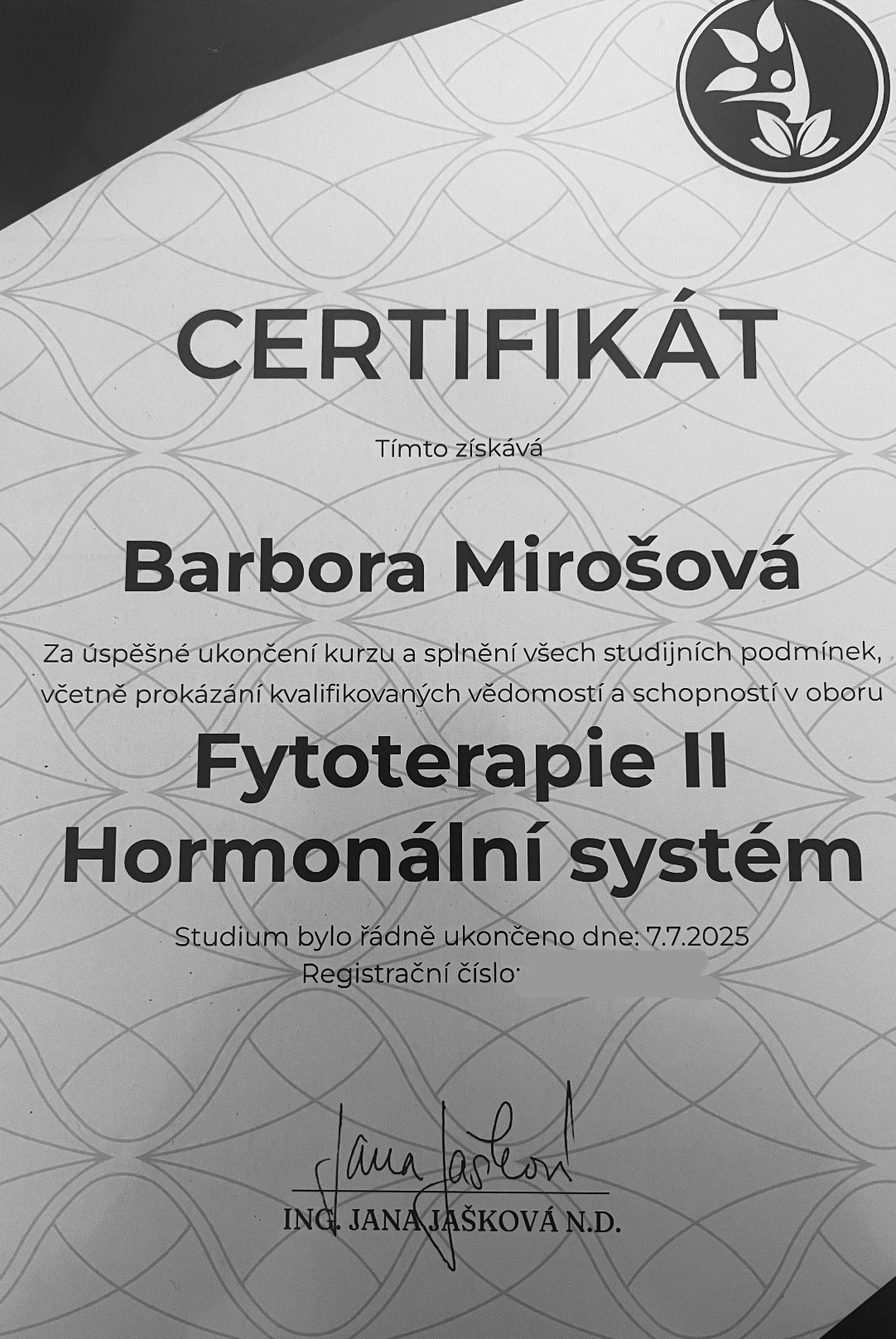 Jsem certifikovaná facilitátorka a fytoterapeutka, která se věnuje ženskému zdraví a harmonii těla i duše prostřednictvím síly přírody. Moje cesta k fytoterapii začala s hlubokým zájmem o bylinky a jejich léčivé účinky, což mě vedlo k tomu, abych se začala vzdělávat v oblasti bylinné medicíny a fytoterapie.